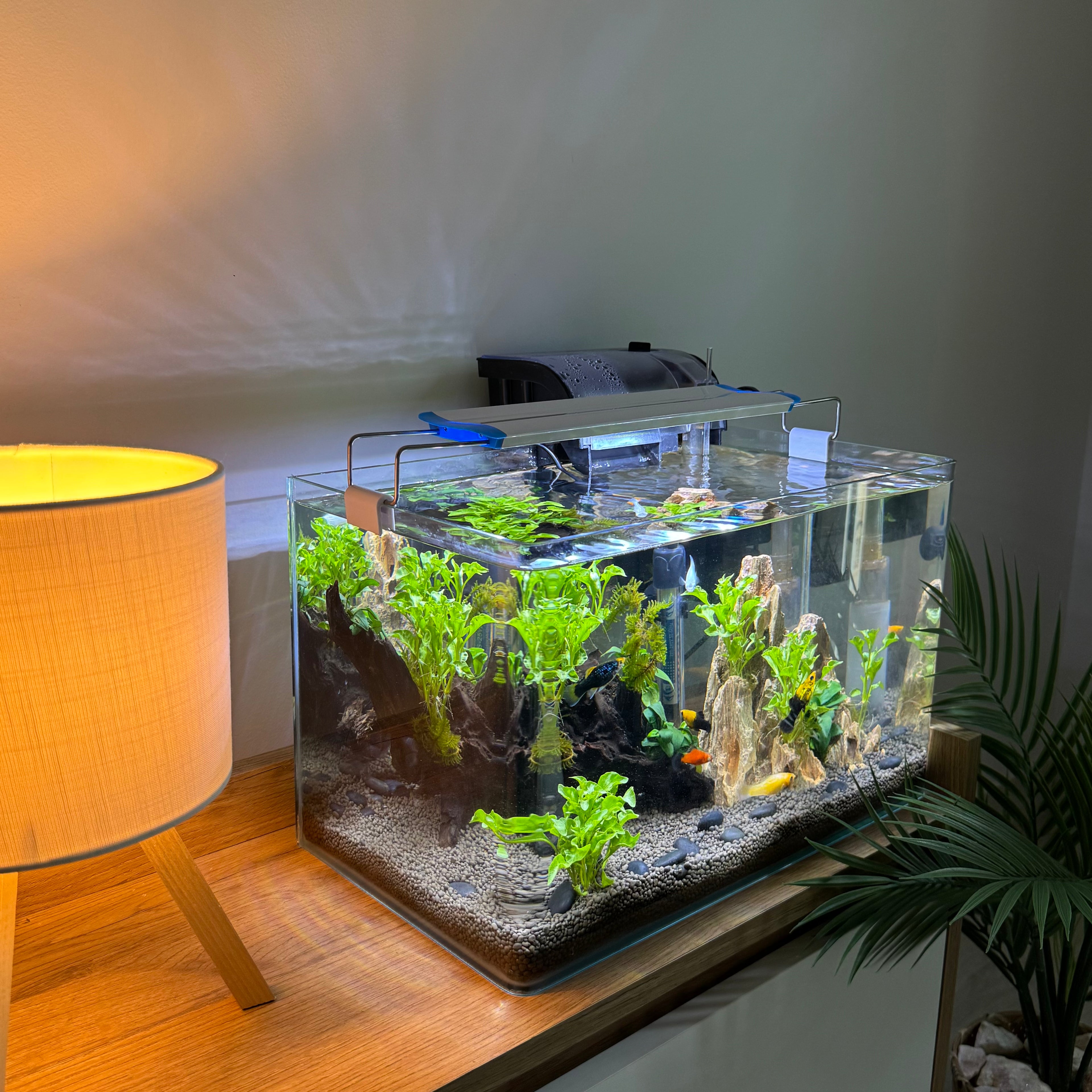 We started experimenting with bringing small, balanced ecosystems indoors. Not as aquariums, but as living presences. Objects that didn’t demand attention, yet slowly changed how a room felt.